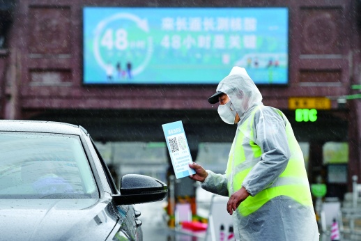 3月31日,杭长高速长沙收费站出口,工作人员冒雨对进入长沙的车辆和人员进行防疫检查。连日来,长沙县湘龙街道组织公安、交通运输、卫生服务等部门,在该收费站24小时值守,严格把好“防疫关卡”。