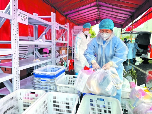 “下午4点结束配送,整理好站内货品已经是晚上7点多。现在,储存区已经空出来了,就等新一波货品入仓了。”套在宽大的工作服里,王争显得有点单薄。此刻,他正在向仓库提交调货申请,成为重点保供商超后,每天都将有超平日3倍的新鲜蔬菜、肉禽蛋运送至门店,满足封控区群众日常生活需要。