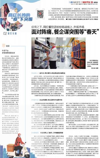 前有长沙鑫远白天鹅酒店外卖屋、潇湘华天大酒店主动“放低身段”销售物美价廉的包点、凉菜和休闲食品,后有长沙地道湘菜馆送大厨上门定制一桌爽口饭菜,在餐饮的“寒冬”中,无论是五星级酒店还是连锁餐厅,都在主动向年轻消费者示好,同时静待疫情阴霾散场的佳音。