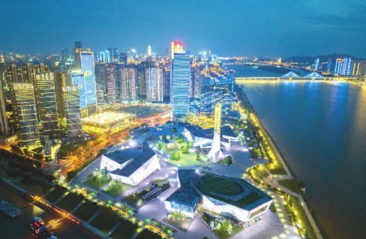 6月26日晚,长沙市湘江两岸楼宇亮起“第二十四届中国科协年会”的主题灯光秀,将星城的夜空装扮得流光溢彩,给广大市民带来了精彩的视觉盛宴。 当日,由中国科学技术协会和湖南省人民政府共同主办的第二十四届中国科协年会在长沙开幕,来自国内外的110余位院士及5000多名科学家、企业家和各界人士,通过线上线下方式参会。