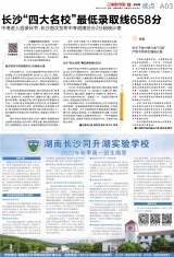 7月2日,市中招办根据“指标到校、择优录取”的原则,分别划定为:长沙市一中、师大附中、长郡中学、雅礼中学658分,麓山国际、南雅中学、明德中学、周南中学、长沙市实验中学650分,望城区一中、长郡斑马湖中学626分,其他省级示范高中617分。