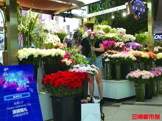 三湘都市报记者走访发现,长沙街头的花店大多推出了“七夕”主题活动。琳琅满目的鲜花总是轻而易举就能吸引人们的视线。