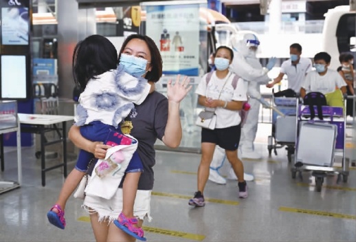 8月9日,滞留三亚的游客进入三亚凤凰国际机场准备登机返程。 首批125名游客搭乘飞机前往西安。