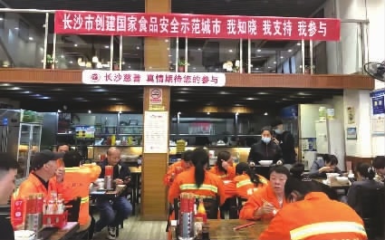 今年4月底,长沙市慈善总会第2家“好人好店”粉面馆落户岳麓区咸嘉湖街道白鹤咀社区,将为该社区100名环卫工人、低保户以及志愿者免费提供一年早餐。每天早上,就有不少环卫工人来这里排队嗦粉,开启能量满满的一天。