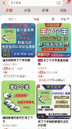 9月20日,三湘都市报记者在网上搜索发现,与“羊了个羊”相关的词条遍布各大社交平台、电商。在网购平台上,游戏外挂道具售价普遍在3至20元之间,销售量最高的达到2万。例如“羊了个羊免游戏辅助通关攻略,无限道具bug过关破解版”销售链接,标价9.99元,显示成交量在2000件以上。商品详情一栏介绍,该服务支持苹果、安卓,包教包会,秒过第二关。卖家提示“直接拍,自动发货”。