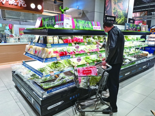 此外,盒马鲜生、华润万家、沃尔玛等大型零售商依托基地直采优势,积极维持物价稳定。在盒马鲜生华创店,1.99元一盒的本地绿豆芽、3.49元一袋的杭白菜、1.99元一把的小香葱深受消费者青睐。“红薯尖、香葱、软皮尖椒均为湖南基地直采,物价稳定。”店长李永红介绍,国庆假期结束后,长沙市民对生鲜食品的需求增长明显,长沙门店通过“基地直采+市场采购”的模式,保障物资供给和价格稳定,“由于线上订单激增,可能会出现配送延迟的现象,请消费者理解。”