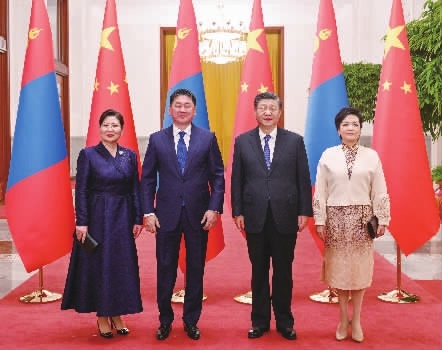 双方发表《中华人民共和国和蒙古国关于新时代推进全面战略伙伴关系的联合声明》,一致同意携手推进现代化建设,朝着共建和平共处、守望相助、合作共赢的两国命运共同体方向作出努力。