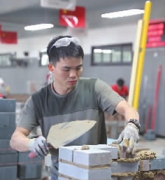 作为中建五局主办的学校,中建五局高级技工学校(长沙建校)自2015年参加世界技能大赛以来,学校连续四届获殊荣,培养了世赛砌筑项目中国获奖第一人邹彬、第一块金牌得主梁智滨、蝉联金牌者陈子烽、金牌三连冠获得者伍远州,被誉为“世赛福地”“世赛冠军摇篮”。