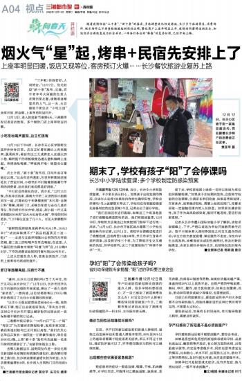 “我们后续还在进行跟踪,如果这三个班其他孩子进行核酸检测是阴性的话,我们将报请复课,12月10日,学校相关区域也已在疾控部门指导下进行统一消杀。”12月12日,长沙市开福区清水塘第三小学校长谢益林告诉记者,12月11日,该校学生错峰进校进行了核酸检测,出现两管10混1异常,并且有学生身体不适的现象,涉及到学校三个班,为了降低学生交叉感染的风险,经学校研判,这三个班继续执行“停课不停学”一天。