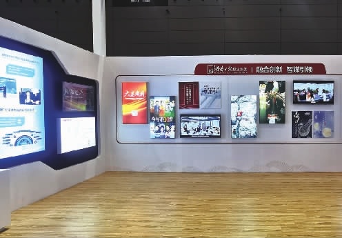 其中,湖南日报集团展区以“智媒引领、数字赋能——加速打造全国一流省级党报集团”为主题,主要展示内容为守正创新、融合加速,包括《大道向前》等主流作品、《大湖之蓝》等爆款融媒产品矩阵、新媒体平台建设与产品、《湖湘一万年》等2023年重点策划等;聚焦主业、产业多元,包括建设新湖南媒体视频产业基地、红色文化传播的专家型服务商等内容;智媒引领、数字赋能,包括“慧眼无碍”内容安全自动检测系统、联合利国数字版权交易中心、湖湘新文创NFT数字平台项目、湖南日报AI创作与虚拟数字人、三湘5G智媒等内容。