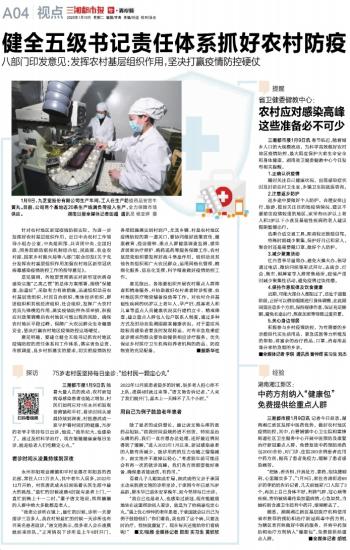 健全五级书记责任体系抓好农村防疫