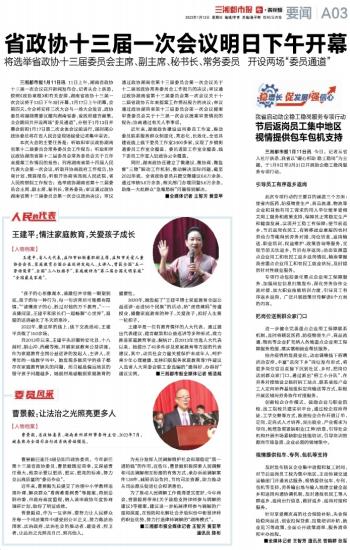 三湘都市报1月11日讯 11日上午,湖南省政协十三届一次会议召开新闻发布会。记者从会上获悉,按照《政协章程》和有关安排,湖南省政协十三届一次会议将于13日下午3时开幕,1月17日上午闭幕,会期四天。全会将安排三次大会与一场大会发言,政协委员将围绕重要议题向湖南省委、省政府建言献策。全会期间共开设两场“委员通道”,分别于1月13日开幕会前和1月17日第二次全体会议前进行,届时部分政协委员将在省人民会堂现场接受记者集中采访。