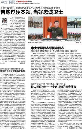 三湘都市报1月19日讯 19日上午,省委书记、省人大常委会主任张庆伟在长沙市调研医护救护、安全维稳、度冬保供等工作,并走访慰问基层一线工作人员,向春节期间仍然奋战在一线的全省各行各业、各条战线的广大干部群众及其家属致以亲切问候,祝福大家新年快乐、身体健康、阖家幸福。