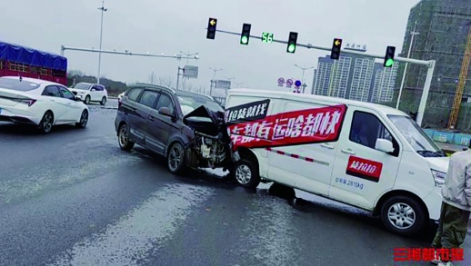 2月10日,湖南岳阳县荣湾湖村兴吴片红绿灯路段,公共场所监控画面显示,15时30分许,一辆棕色面包车突然追尾撞上正在等待绿灯通行的小货车,并推行货车前行近10米才停下。岳阳县交警大队民警赶到事故现场发现,两车追尾相撞停在路口中间,后方棕色面包车车头受损严重,完全卡在前方白色小货车车尾部。