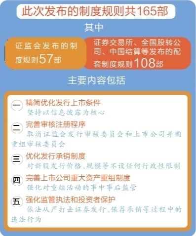 2月17日,中国证监会发布实施全面实行股票发行注册制相关制度规则,标志着注册制的制度安排基本定型,注册制推广到全市场和各类公开发行股票行为。