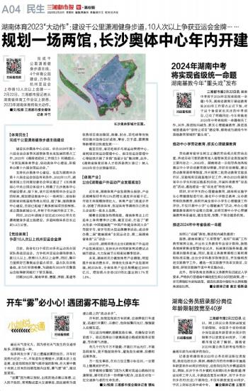 完成千公里潇湘健身步道主线、4个体育公园建设,力争在杭州亚运会上夺得10人次以上金牌……2月22日,三湘都市报记者从湖南省体育工作会议上获悉,2023年湖南体育将有大动作。
