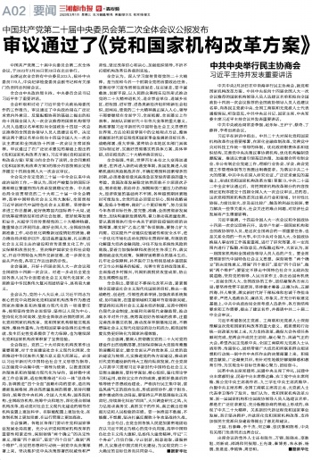 审议通过了《党和国家机构改革方案》