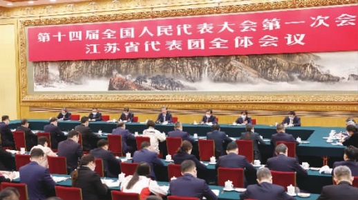 在认真听取大家发言后,习近平作了发言。他首先表示赞成政府工作报告,充分肯定江苏五年来经济社会发展和党的建设各方面取得的成就,希望江苏继续真抓实干、奋发进取,在高质量发展上继续走在前列,为谱写“强富美高”新江苏现代化建设新篇章实现良好开局,为全国大局作出新的更大贡献。