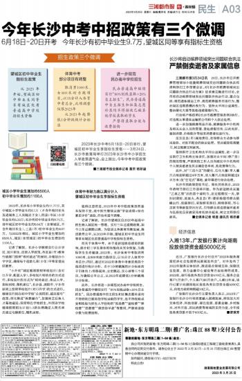 2023年长沙中考6月18日-20日举行,望城区初中毕业生享指标生资格……3月24日,长沙市教育局举行2023年长沙市中小学招生入学政策通气会。会上指出,今年中考中招政策有三个微调。