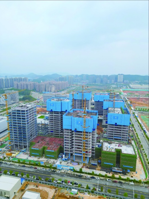 世界计算·长沙智谷项目择址长沙先进计算产业集聚区,占地913亩,建筑面积约273万平方米,分三区建设。首开区由中建五局总承包公司市政分公司承建,施工总面积约为48万平方米,占总建筑面积比约55%。首开区包含E0—12、E0—13地块,其中包括硅立方和华为超晶体的建设。4月7日,E0—12地块T07栋正式封顶。