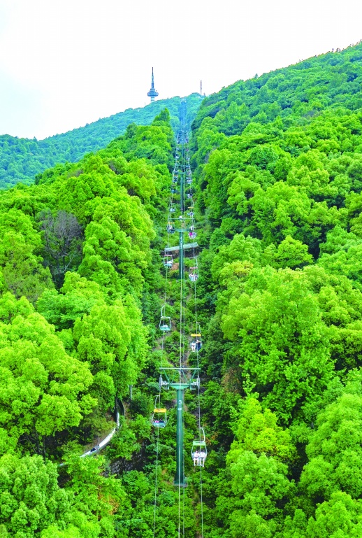 5月4日,游客乘坐长沙市岳麓山景区索道观光游览。该索道自1993年启动运营以来,已连续29年为市民和游客提供服务。近日,岳麓山风景名胜区管理局发布公告,将于5月7日对原有的旧索道进行提质改造并暂停运营。具体开放时间后续将通过景区官方微信平台公布。