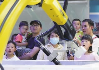 5月14日,长沙国际会展中心,长沙国际工程机械展览会上,各展商抓住机会,全面展示工程机械领域的新产品、新技术、新理念,一大批“黑科技”在长沙国际工程机械展览会上亮相。图①:参展商现场展示一双防刺穿劳保鞋。图②:观展市民被视比特机器人灵巧的动作所吸引。图③:来自深圳的参展商展示只有一角硬币大小的微型液压泵。