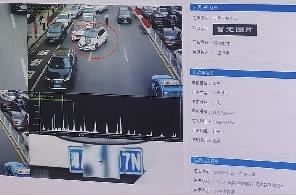 记者通过抓拍系统看到,当车辆鸣笛时,尽管路面有不少其他嘈杂的声音,但系统仍然精确锁定了鸣笛车辆,通过特殊图案在实时画面上标记,并将该车声波振动频率以图片显示出来。同时,还显示了该车车辆信息及具体违法行为、违法时间和地点。