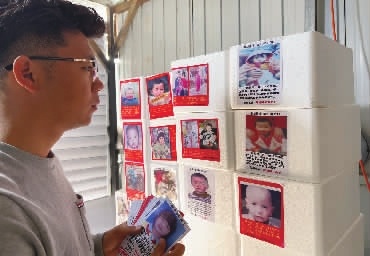 有了想法之后,郭峰开始付诸行动,他们通过寻子公益网站搜集了许多失踪小孩的信息。“一开始做出来的是单张的照片。只是把照片粘在打包用的泡沫箱上。”郭峰说,后来为了物尽其用,达到最好的传播效果,“我们还把孩子们的照片印在打包包裹用的胶带上。”