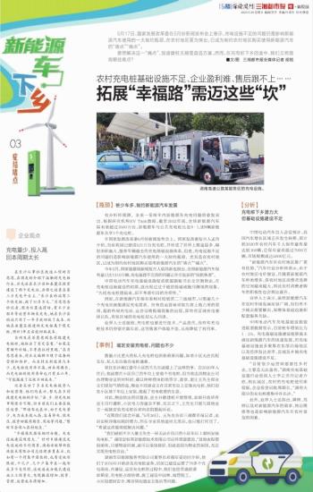 5月17日,国家发展改革委在5月份新闻发布会上表示,充电设施不足的问题仍是影响新能源汽车使用的一大制约瓶颈,在农村地区更为突出,已成为制约农村地区购买使用新能源汽车的“堵点”“痛点”。