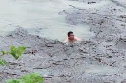 游了将近八十米,覃开辉游到水牛旁使出了最大力气,终于割开了绳子。“回程的时候,我手上拿的刀都被水冲走了。”回过神,覃开辉才意识到此时自己身处危险之中。