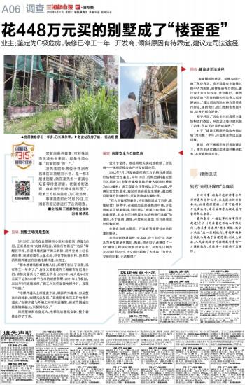 花448万元买的别墅成了“楼歪歪”