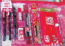 6月5日,在长沙市开福区营盘路上的几家文具店里,专为考试定制的孔庙祈福文具套装都摆在显眼位置,里面有中性笔、涂卡铅芯、橡皮、套尺、透明垫板等,售价21元。文具店的工作人员介绍,因为离长沙市一中比较近,家长和学生都希望高考图个吉利,这个套装卖得挺好。