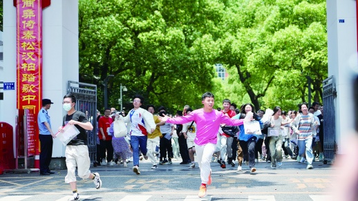 6月7日上午,高考首场考试结束,长沙市一中考点,考生飞奔出考场。刘松柏 摄 |