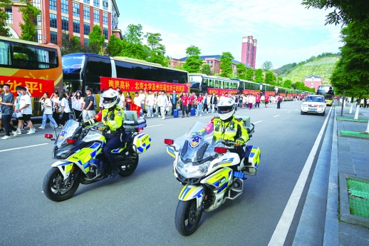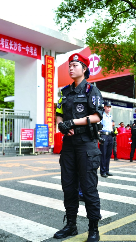 6月7日,长沙市一中考点,特警在执勤,为考生保驾护航。王翊玮 黄佳敏 摄