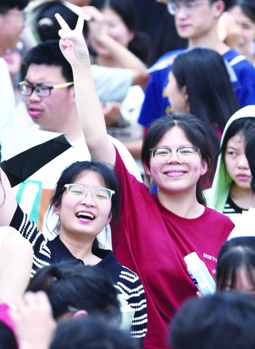 6月7日,高考首场考试结束,嘉禾县第一中学高考考点,考生微笑走出考场。黄春涛 摄