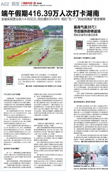 端午假期416.39万人次打卡湖南