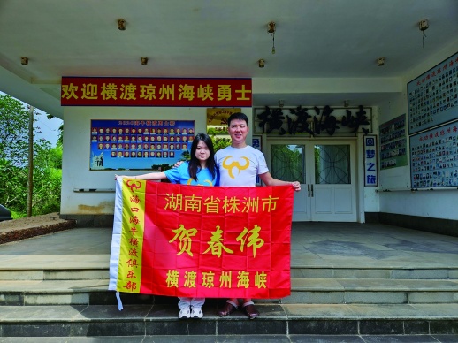 2022年1月,贺春伟首次尝试长泳。2023年5月17日,他回到老家茶陵,畅游东阳湖,里程突破20公里,便萌生了挑战横渡琼州海峡的念头。