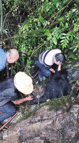 黑熊被困地位于壶瓶山国家级自然保护区惜粮坪观测站附近,有一段将近2小时的山路无法乘交通工具抵达,且保护区气候多变、时晴时雨,山路崎岖、荆棘密布。400公里的路程,用了11个小时,但邱启官等人觉得“值得”。