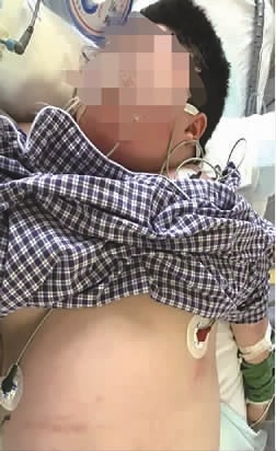 张强是在一天前出院的,在他的电子病历中,住院的图片还在。孩子处于半昏迷状态躺在病床上,被一堆的医疗器械围绕,让人十分心疼。