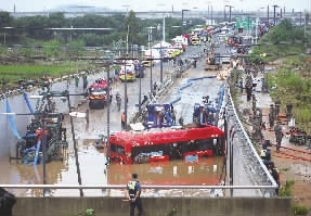 但是悲剧仍在上演。忠清北道清州市某地下车道被洪水淹没,7月16日午间,韩国搜救人员在被淹事故现场又找到一具遇难者遗体。至此,事故已造成8人死亡。由于事故发生时,有包括公交车在内的15辆车被困,随着搜救工作的进行,事故造成的死亡人数还将进一步增加。
