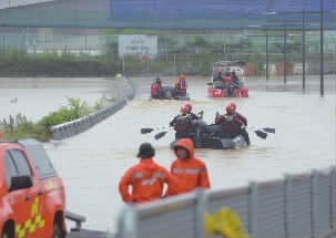 部分民众因道路被淹而困在家中等待救援。韩国国务总理韩德洙同政府官员开会时说,当前最重要的是确保没有人员死伤,要求官员保持戒备状态。