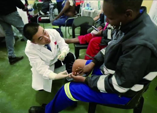 中国第20批援津巴布韦医疗队受中矿资源比基塔矿业有限公司邀请,驱车5个小时前往距离津巴布韦首都哈拉雷300公里外的马斯温戈省比基塔矿山,为矿山及周边中资企业中津双方参建员工和当地居民开展健康义诊。