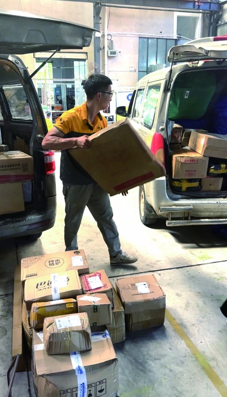 虽说待派送的包裹大部分是生活用品,可真要一个个码上车箱,却发现不少“包裹刺客”。“有些快递看起来很轻、很小,实际上分量很足,很容易闪到腰。”装车的20分钟,自诩有长期运动健身经验、能轻松搬起重物的体验记者累得气喘吁吁,直呼“腰疼”。