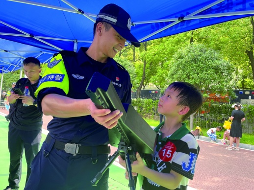 演练环节结束后,小朋友们依次参观了警用车辆及装备,登上了特种车辆,戴上警用头盔,穿上防弹背心,欢笑着参与“挑战特警”“气球大作战”“趣味轮胎翻滚”等互动游戏,过足了“特警”瘾!现场,特巡警队员还为小朋友们设计了“自我保护技能教学”“暑期安全小课堂”活动项目。