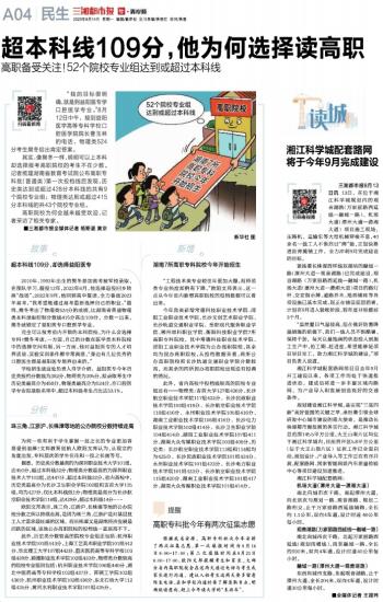其实,像樊冬一样,明明可以上本科却选择报考高职院校的考生不在少数。记者梳理湖南省教育考试院公布高职专科批(普通类)第一次投档线后发现,历史类达到或超过428分本科线的共有9个院校专业组;物理类达到或超过415分本科线的共43个院校专业组。