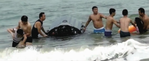 “救人!”来不及多想,王同坤、蒋吉林两人骑着摩托艇,拿着救生衣向溺水游客驶去。因为一台摩托艇一次性救不上这么多人,水性好的唐聪、张汉城、伍太郎遂向游客游过去。