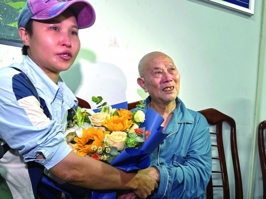 8月16日,长沙交警支队芙蓉大队,66岁的张德灿(右)与失散20年的女儿喜重逢。2003年,广东省清远市的张德灿因与家人赌气离家出走,多年来家人遍寻无果。今年6月,张德灿在长沙发生交通事故,一直无法言语,开颅手术后2个月基本康复。8月15日,长沙交警支队科技民警终于确认了当时未带身份证的张德灿身份信息,并与他的家人取得了联系。 图/湖南日报全媒体记者 徐行 视频/三湘都市报全媒体记者 虢灿