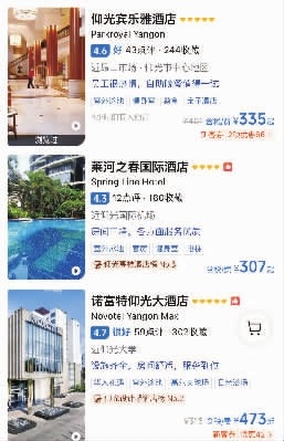 8月16日,三湘都市报记者检索发现,缅甸仰光宾乐雅酒店“高级大床房”只需335元每晚,即便是周末,各房型均有大量剩余房间可供预订。位于仰光大金塔、缅甸国家博物馆等景区周边的泽尔拉斯酒店、仰光泛太平洋酒店、玫瑰园酒店周末档期也未预订满,各价位均有房可订。