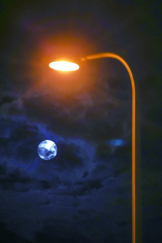8月30日,长沙市开福区四方坪。超级月亮与路灯互映,静谧澄澈。8月31日9时36分,2023年最大“超级月亮”将亮相天宇。此次“超级月亮”也是今年8月的第二个满月,又被称为“蓝月亮”。“蓝月亮”并不是蓝色的月亮,而是指一个月内出现的第二次满月,平均每2.4年会出现一次。此外,本次“超级蓝月”正值土星冲日期间,能欣赏到土星和满月同框的土星合月现象。