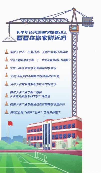 能不能在家门口“好上学,上好学”一直是家长所关注的重点。为此,下半年,长沙将进一步建立学位预判机制,完成城区中小学校布局专项规划修编工作,加强南部融城片区优质教育配套,鼓励区县建设九年一贯制学校。实施基础教育学位建设三年行动,对长沙学校建设项目实行常态化调度、清单化管理,确保今年秋季开学的学校顺利开学,明年开学的项目今年年底前动工。加快长沙市一中新校区、长郡中学新校区建设;完成长郡双语高中部、十一中拓址新建项目基础施工。研制新品牌学校培育计划,完成35所乡镇标准化寄宿制学校建设和14所乡村小规模学校提质改造任务。